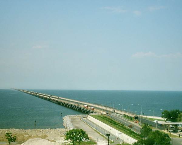 A campeoníssima! A ponte mais extensa do mundo até esta da data (2006)! De perder de vista! Lake Pontchartrain Causeway Extensão: 38.422 metros / País: Estados Unidos da América / Ano de construção: 1969