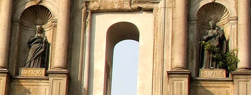 A gente observa a fachada da antiga Igreja de São Paulo destruída por um incêndio e depois chamada de Ruínas de São Paulo, e vemos 4 estátuas, entre tantos outros detalhes e ficamos a perguntar; de quem são essas quatro enfileiradas no mesmo plano?
