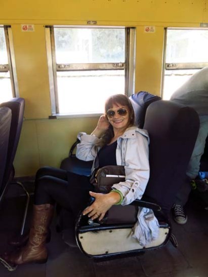 Viajamos no vagão de aço da década de 50 que lembrava os tempos em que o transporte de passagiros por ferrovia chegava a Santos, no litoral de São Paulo. Os assentos são originais. O espaço fazia inveja aos apertados assentos de aeronaves.