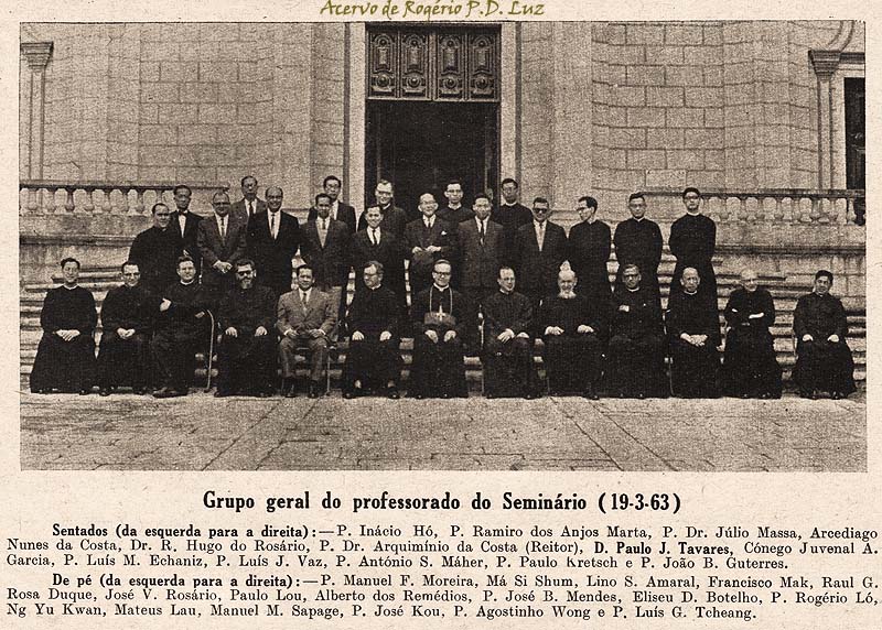 Veja a seguir diversas fotografias que digitalizei do meu acervo, herdado da minha mãe Marcelina da Luz, que fez parte da Legião de Maria que era presidido por Padre Moreira. Também vai transcrito a sua mensagem, uma despedida a Macau, no boletim interparoquial “Encontro”, na edição de Abril de 1987.