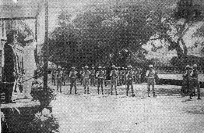 Recorte de um jornal de Hong Kong dos anos 60, fez-me recordar das antigas paradas ou desfiles militares de Macau nos tempos antigos do império português, em que a Polícia Militar ou do Exército propriamente dito, abria o desfile marchando em formação de Vê. O Governador de Macau que assistia ao desfile era o Tenente Coronel António Adriano Faria Lopes dos Santos, que ocupou o cargo entre 17/04/1962 a 25/11/1966, quando foi substituído por José Manuel de Sousa e Faro Nobre de Carvalho.