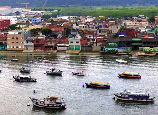 zona portuária de Guarujá, defronte a Santos, estado de São Paulo, Brasil
