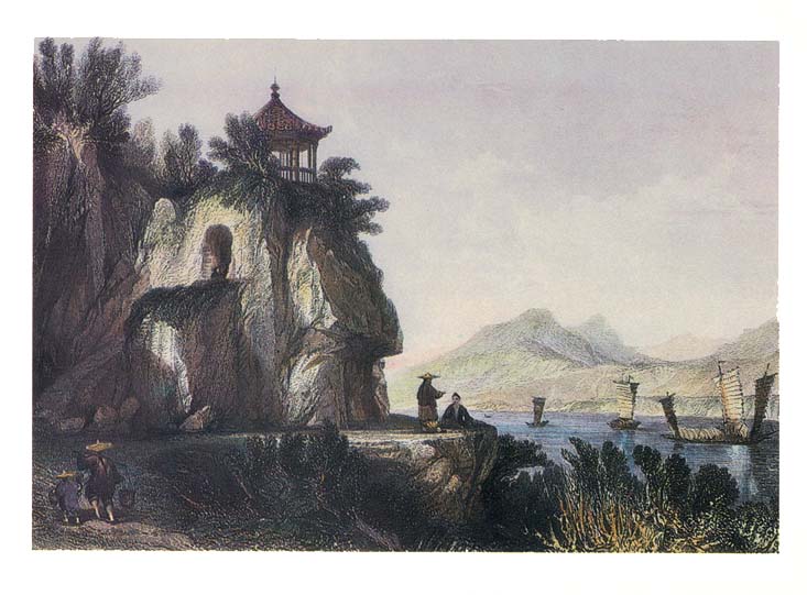 “A Gruta de Camoes, Macau” gravura de S.Bradshaw, segundo desenho de Thomas Allom, C. 1943 – Colecção do Museu de Arte de Macau