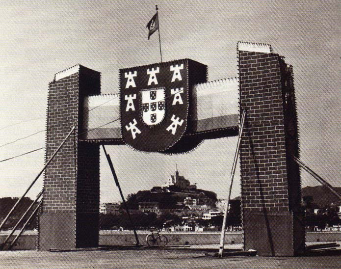 O padrão da foto assinala a comemoração do dia 5 de Outubro de 45 anos da implantação da República Portuguesa. Isto em 1955. Lembro que os desfiles militares eram realizadas na Praia Grande, e desse local tenho fotos em negativos que ainda vou digitalizar para publicação.