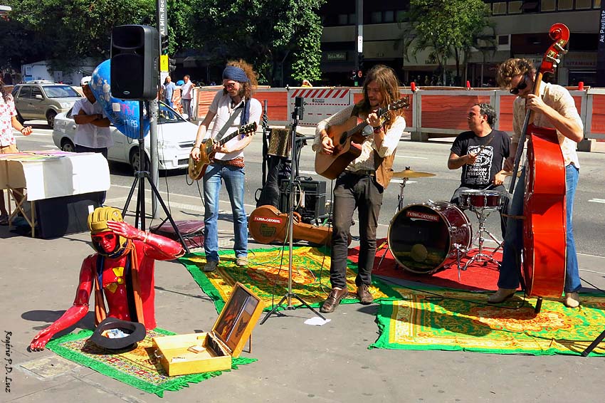 Eles se qualificam de artistas de rua, mas são bons músicos, bons mesmo. Chamam-se “Picanha de Chernobil”, nome meio esquisito mas desperta atenção. São originários de Porto Alegre, no Rio Grande do Sul. A rigor, se músico fosse valorizado no Brasil, eles não estariam na rua.