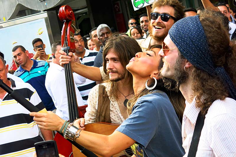 Ela, toda graciosa e simpática, mestiça de japonês com libanês/suiço, ex-Big Brother, falou com os rapazes, pegou o chapéu deles e andou pedindo dinheiro ao público, brincou, dançou, fez um selfie com um stick bem comprido e posou para fotos. Sorte deles! Pois ser um bom artista de rua e ter boa apresentação, sempre atrai a televisão com seus repórteres a patrulhar a Avenida Paulista, “onde tudo acontece”, e é o charme de São Paulo de visita obrigatória para turistas e moradores de São Paulo.