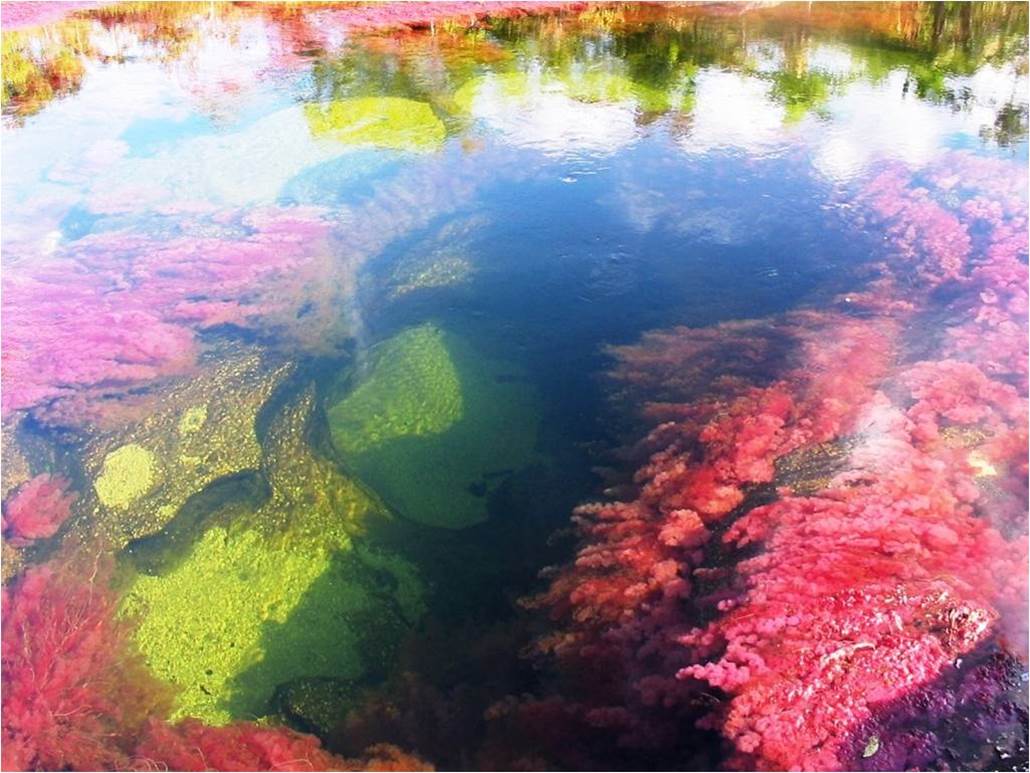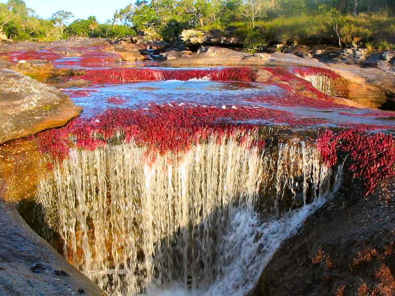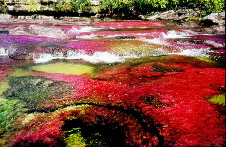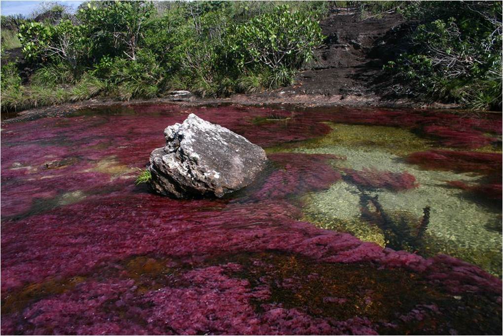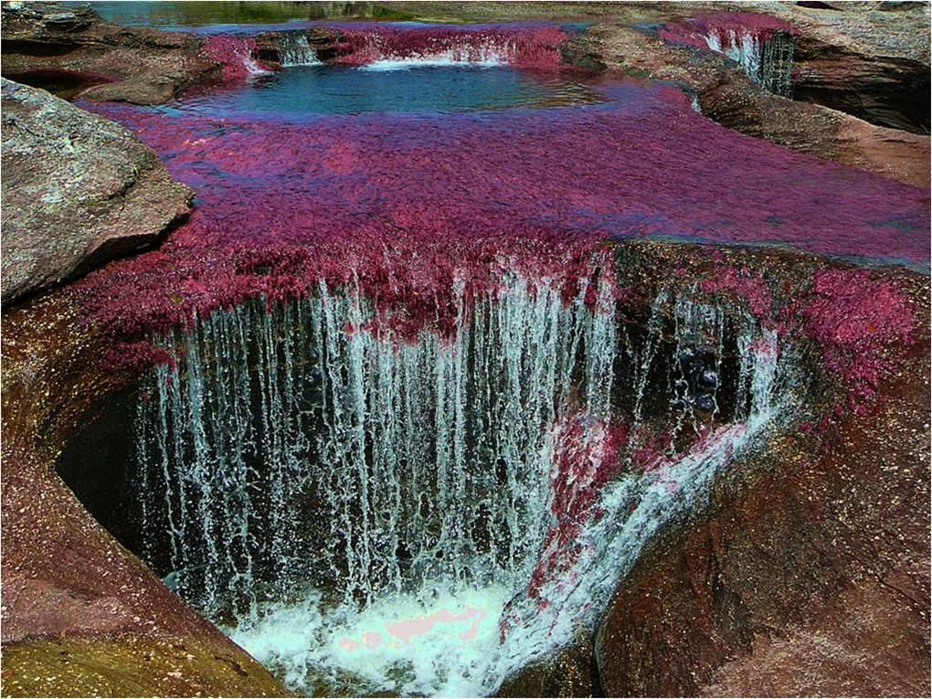 Caño Cristales é um rio colombiano localizado na Serranía de la Macarena província de Meta. O rio é comumente chamado de “rio de cinco cores” ou o “arco-íris em líquido”, e é conhecido como o mais belo rio do mundo devido às suas cores marcantes.