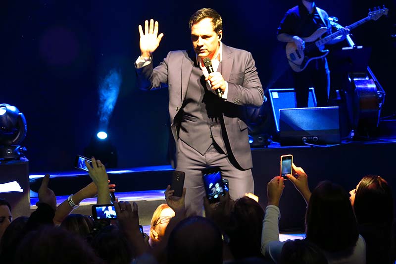 Acompanhado por uma excelente banda e vocais, cantou um variado repertório de músicas em inglês e que incluía Frank Sinatra e Elvis Presley. Justificou que está acostumado a cantar no idioma desde jovem mas que iria cantar também em português no show e para alegria do público, cantou umas canções de Roberto Carlos entre elas “como é grande o meu amor por você” e “como vai você”.