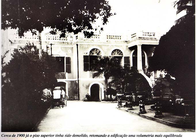 As primeiras imagens conhecidas (finais do século XIX) apresentam um piso superior que não devia fazer parte da composição original, designadamente porque o remate em balaustrada sobre a porta principal deveria ser o prolongamento das balaustradas laterais que circundam o telhado.