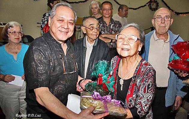 Alex entrega prenda à saudosa Angelina Colaço na festa de Natal da Casa de Macau de 2009. Logo atrás dos dois, no meio, está o saudoso Harry, de Shanghai: