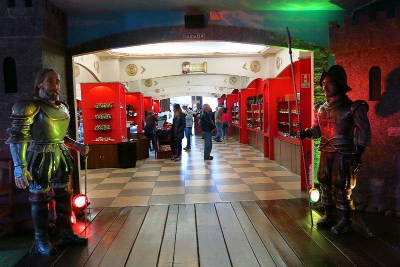 A caminho do hotel, fizemos uma parada no O Mundo do Chocolate, onde você percorre por corredores internos que contam a história da fabricação de chocolate terminando na loja com variados produtos.