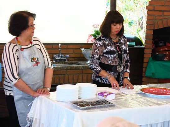 Yolanda, à direita, fala sobre o preparo da Capela.