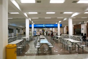 Praça de alimentação no Centro de Apoio ao Romeiro. Você tem muitas opções de restaurantes que servem principalmente comida pesada por quilo, ou preço único podendo comer à vontade. A 2ª opção acaba sendo a melhor pois a diferença de preço é pouca e come-se à vontade a grande variedade de comida. Mas como alternativa tem lanches como do McDonald. Nos fins de semana é custoso achar uma mesa vaga devido ao grande volume de gente, embora se adiantar ou atrasar o almoço fica mais fácil.