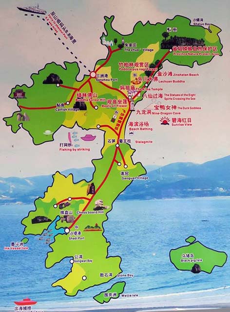 A ilha de Sanchoão faz parte do arquipélago de Chuanshan (川山群島), que é constituído por duas ilhas e vários ilhéus. As duas maiores ilhas são: Shangchuan (上川) e Xiachuan (下川). Shang (上), quer dizer a de cima, e Xia (下), a de baixo.