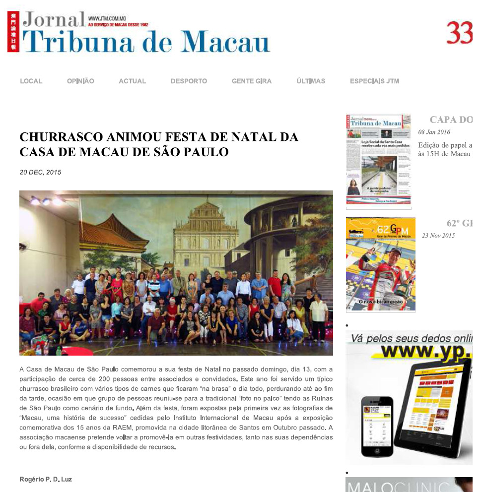 Jornal Tribuna de Macau noticiou a festa