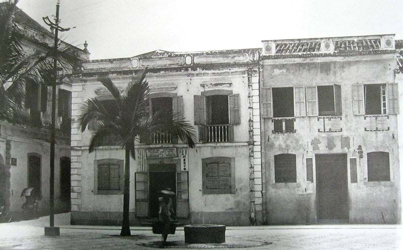 Os três caracteres chineses por cima da porta do prédio à direita lêem-se “Tung Sing Tong”, cuja Associação de Beneficência está hoje instalada na Rua de Camilo Pessanha. Vê-se parcialmente, à esquerda, o edifício da Santa Casa e a Travessa do Roquete.