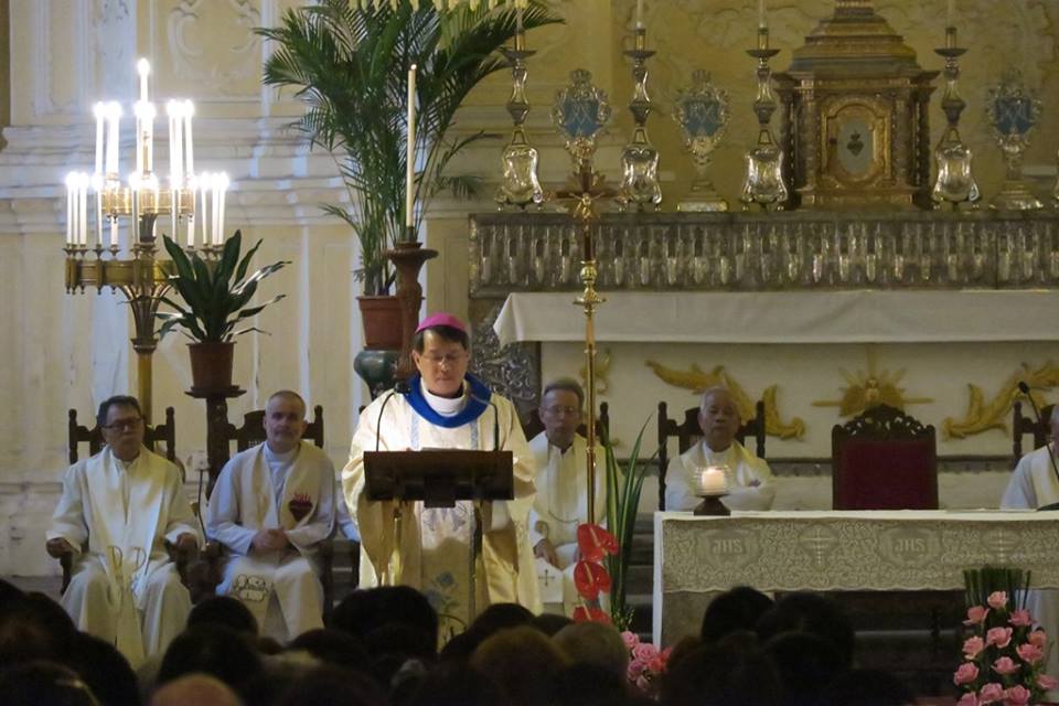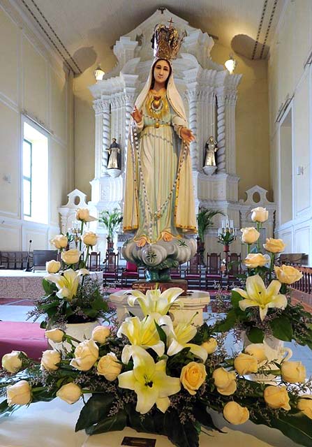 (M.V. Basílio) Esta estátua de Nossa Senhora de Fátima vai estar durante um mês em cada uma das 12 igrejas escolhidas para a “Celebração do Centenário das Aparições de Fátima”, que decorrerá no período entre 14.05.2016 e 12.06.2017, em Macau, RAE. Esta celebração já iniciou ontem na igreja de S. Domingos, com a recitação e meditação do Santo Terço, em português, pelas 16H00, e em chinês, pelas 16H30, todos os dias, à excepção de sábados, em que será precedida de Adoração ao Santíssimo Sacramento, pelas 15H00. A igreja do Seminário de S. José integra as igrejas escolhidas, devendo a estátua de Nossa Senhora estar lá exposta entre 11.03.2017 e 17.04.2017, para a referida celebração