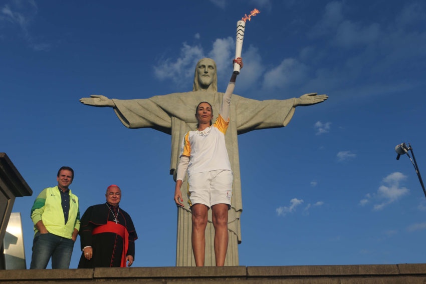 05/08/2016- Rio de Janeiro- RJ, Brasil- Tocha Olímpica chega ao Cristo Redentor com o prefeito Eduardo Paes, Dom Orani e Isabel. Foto: Beth Santos/ Prefeitura do Rio / Fotos Públicas