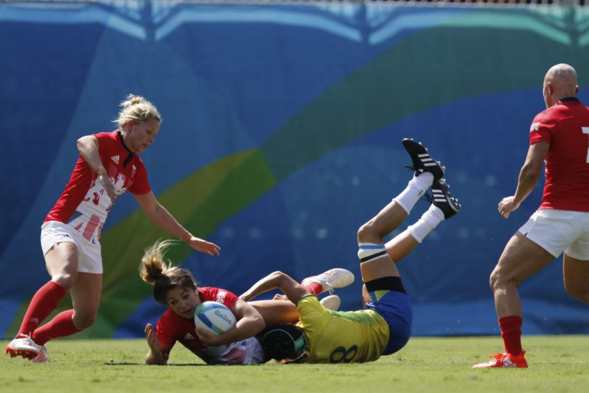 Rio de Janeiro – Time de rugby feminino do Canadá vence o do Japão por 45 a 0 na primeira fase dos Jogos Olímpicos Rio 2016, no Estádio de Deodoro. Foto: Fernando Frazão/Agência Brasil/Fotos Públicas