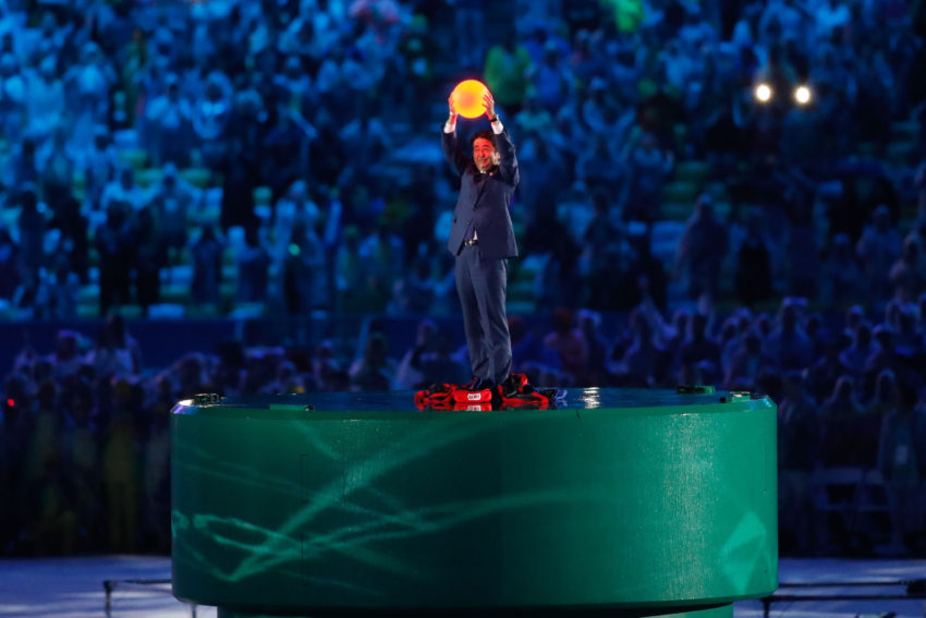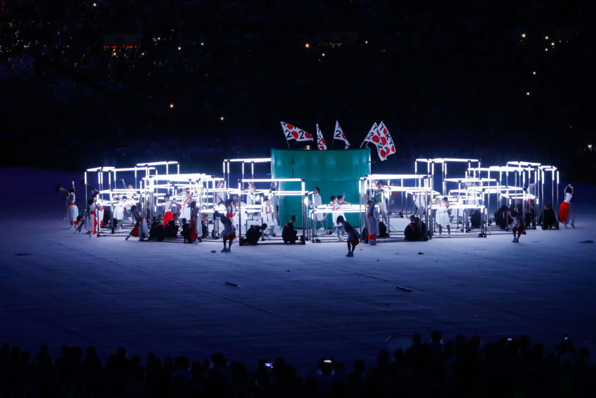 Seguiu-se a transição para o Japão, que promoverá os Jogos Olímpicos de 2020, e no apresentação do País nipônico, o público já pode perceber que o que prevalecerá é a alta tecnologia, ao ver vários robôs a formar a bandeira japonesa com efeitos de luzes. Num momento divertido, o primeiro-ministro do Japão, Shinzo Abe, “transformou-se” no personagem d videogame Mario, e apareceu no centro do Maracanã vindo do outro lado do mundo “atravessando o centro da terra”.