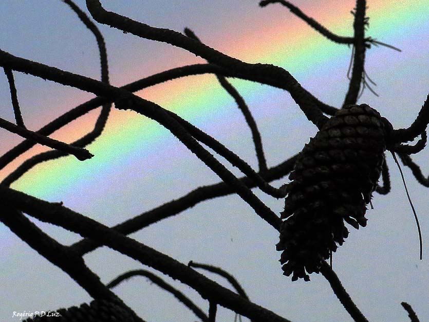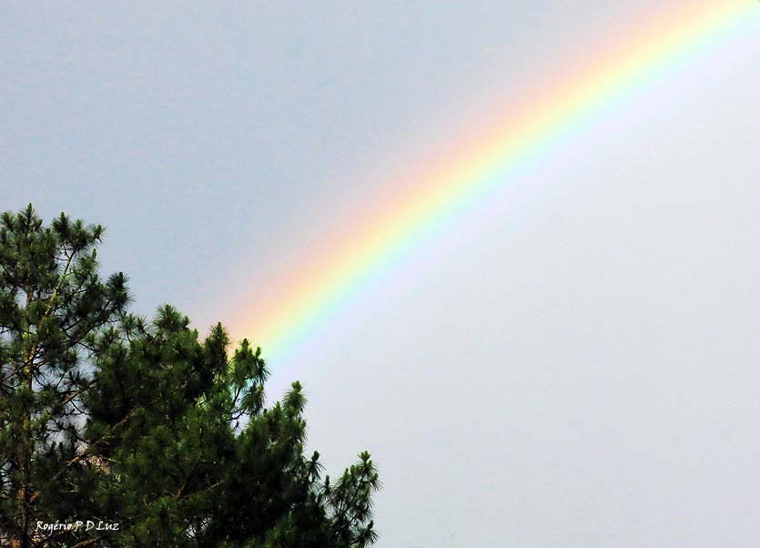 Foram várias fotos feitas do arco-íris que ia ficando mais nítido e com cores mais acentuadas, à medida em que diminuía a chuva, embora o arco secundário, acima do principal, aparecia tímidamente. Após, foi a hora de fazer uma pesquisa para saber melhor como ele é formado: