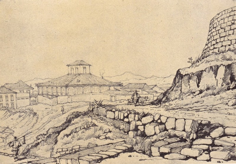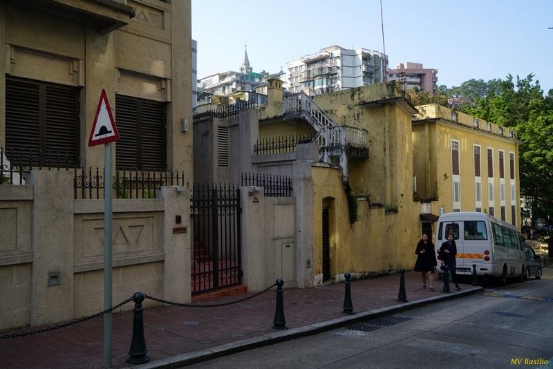 Revendo os desenhos feitos por George Chinnery, podemos de facto encontrar uns quantos esboços em que mostram um prédio com destacável volumetria, com uma torre na cobertura, destinada a iluminação natural e ventilação. Teria sido aquele prédio, implantado quase no sopé da encosta da colina da Penha, que serviu de referência para a designação “Rua do Prédio Alto”, devido à destacada altura do prédio naquele local. Tentámos, durante anos, encontrar o sítio em que estava implantado o “prédio alto”. Graças a várias fotografias feitas no século passado e em finais do século XIX, pudemos então constatar que, após a demolição do “prédio alto”, no mesmo local foi construído um conjunto de oito moradias, de dois pisos, nos quais residiram, famílias bem conhecidas, tais como Paiva, Mazo (de origem mexicana), Henriques, Mendonça, Oliveira, Ramalho e, ainda, a D. Alice Jesus, uma senhora que dava lições particulares, na sua residência, a crianças que viviam naquela zona.