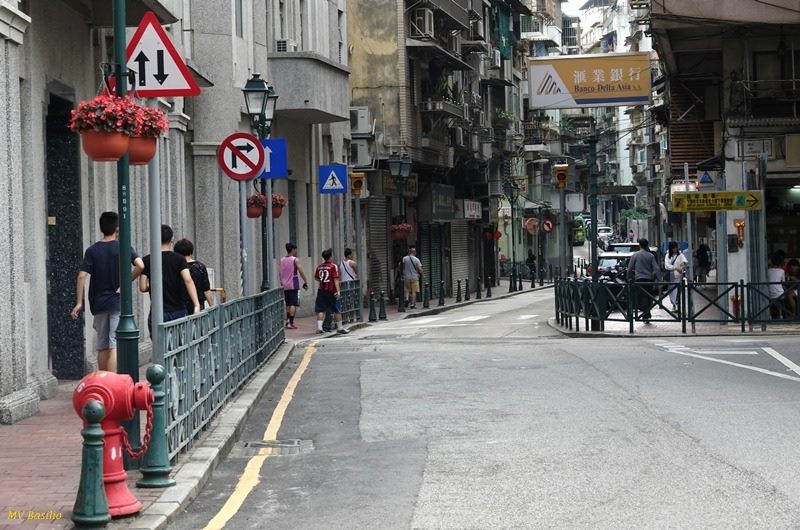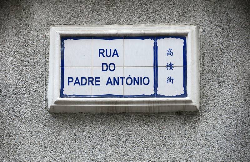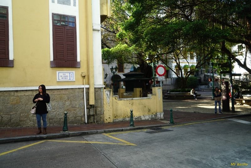 Fim da Rua do Padre António, junto à Travessa de António da Silva. Do lado esquerdo, alguns metros mais adiante, é a entrada para a Casa do Mandarim. Foto M.V. Basílio