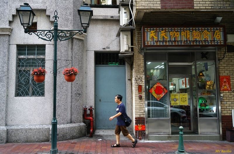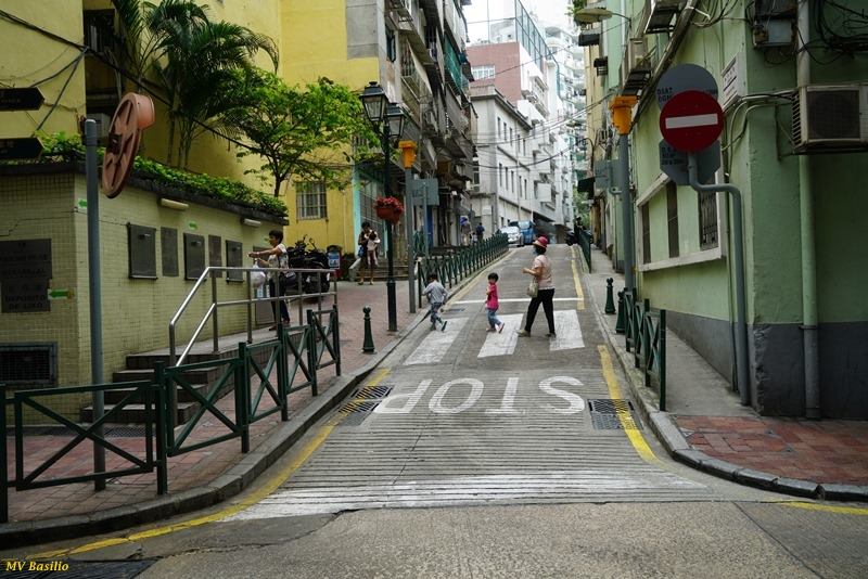 Um troço da Calçada da Paz, visto da Rua do Padre António. Esta Calçada é habitualmente designada, em chinês, por “Kou Lau Há Kái”, isto é, a “Rua de Baixo do Prédio Alto”. Foto M.V. Basílio