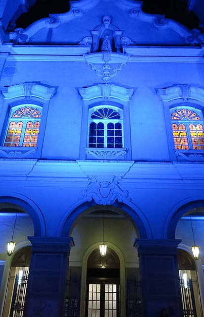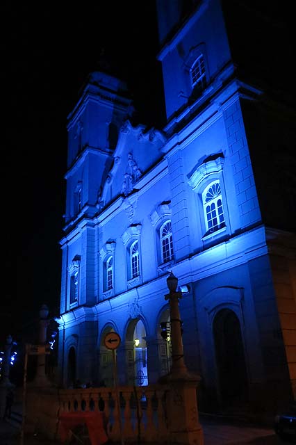 Mesmo com claridade de dia, percebia-se uma iluminação colorida a enfeitar a fachada. Veja as últimas fotos quando à noite.