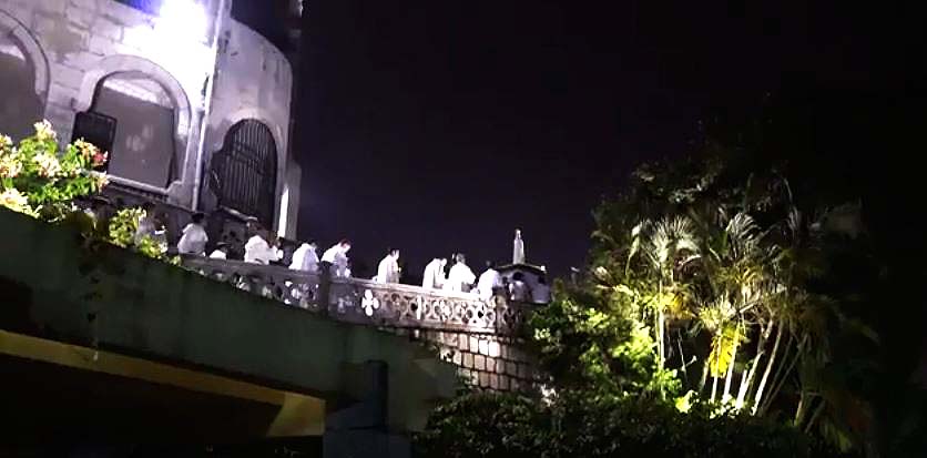A procissão chega ao seu destino final, subindo a rampa que conduz à Ermida da Penha. Imagem do vídeo da Macau News