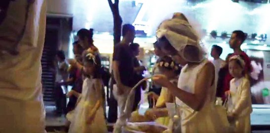Ao longo da procissão, meninas jogas pétalas de rosas pelo trajeto. Imagem do vídeo da Macau News