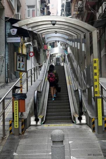 As escadas rolantes da Rua da Surpresa, que entraram em funcionamente no dia 1 de Agosto de 2016, as quais sobem até próximo dos elevadores que dão acesso ao Centro Hospitalar Conde de S. Januário, como é actualmente designado. Foto M.V. Basílio