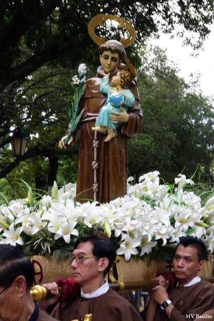 Este ano, a festa de Santo António foi antecipada para o dia 11 (domingo). Na tarde desse dia, depois da missa, com início pelas 17H30, presidida pelo Pároco, padre Pedro Lei, sem a participação do Bispo da Diocese, devido a compromissos, realizou-se então a tradicional procissão, a mais curta de todas em Macau. A imagem do Santo, levada num andor pela Irmandade de Santo António, depois de sair do adro, percorreu uma parte da Praça de Luís de Camões, indo mais à frente do andor várias crianças, vestidas de branco e com cestinhos na mão, a lançar ao chão pétalas de flores. A procissão foi acompanhada por devotos, incluindo antigos residentes do bairro. Depois de contornar o limite da Praça, a procissão foi regressando à igreja.
