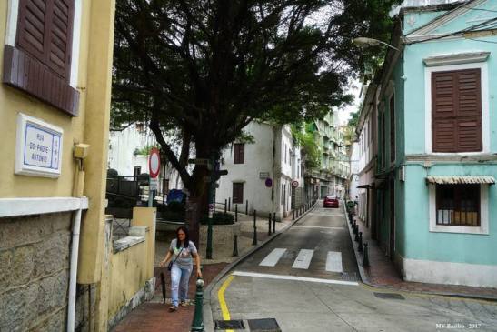 Em frente, é a Travessa de António da Silva. Do lado esquerdo, o primeiro prédio pintado de branco é a entrada para a Casa do Mandarim. Foto M.V. Basílio