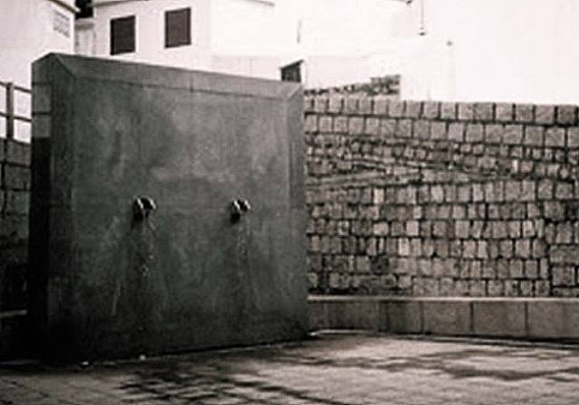 A fonte de duas bicas, feita aquando das obras de requalificação do Largo do Lilau, em 1994-1995. Esta fonte já não existe. (Foto baixada da internet)