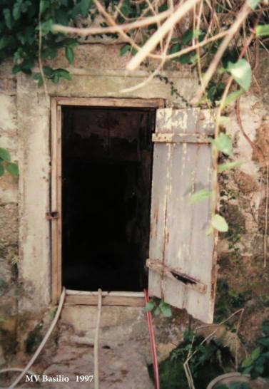 Porta da casota que protege a nascente do Lilau (reprodução de uma foto do autor, feita em 1997)