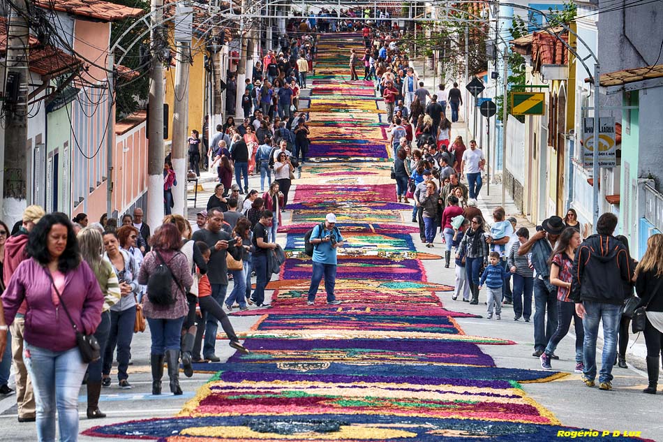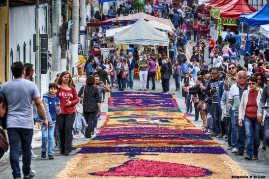 Os célebres tapetes multicoloridos de Corpus Christi voltaram a enfeitar as ruas de Santana de Parnaíba, município vizinho de São Paulo, atraindo milhares de turistas que circularam pelo Centro Histórico da cidade o dia todo.