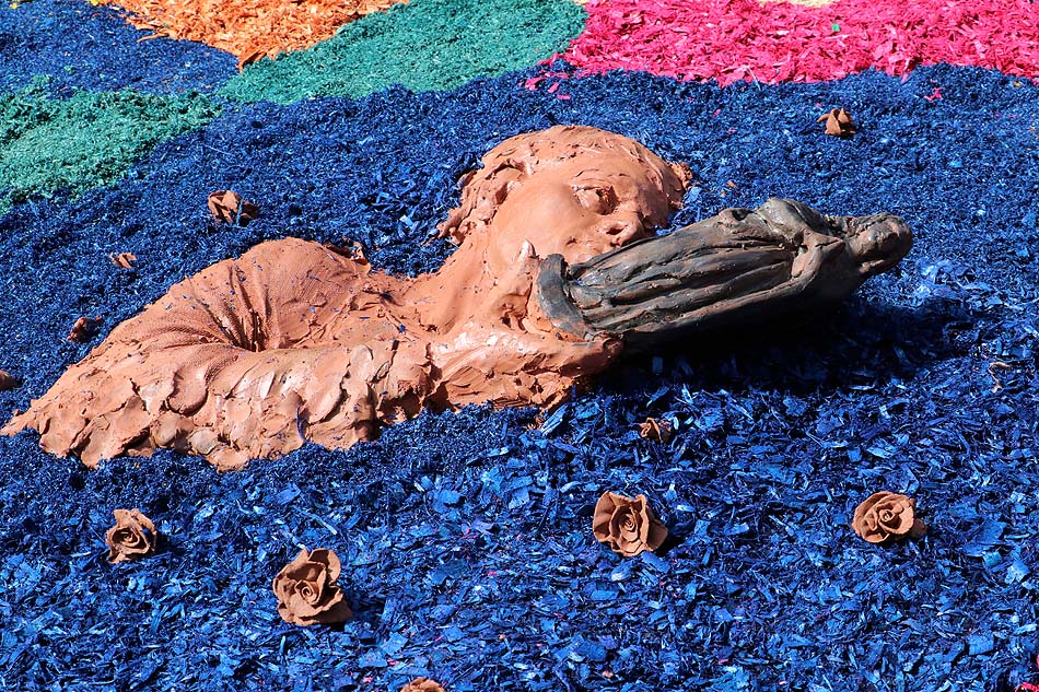 Lá pelas 10 da manhã, vários tapetes ainda estava sendo finalizados pelos colaboradores. O início dos trabalhos atrasou por temor de chuva que ocorreu nos dias anteriores.