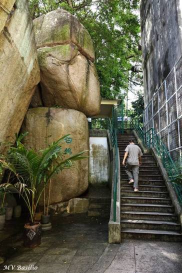 Estes penedos ficam por detrás do maior Templo do Deus da Terra que existe em Macau, localizado no Patane. Ao cimo desta escadaria é já o Jardim de Camões