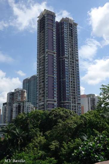 O edifício Grandeur Heights, na zona do Patane, visto do miradouro do Jardim de Camões