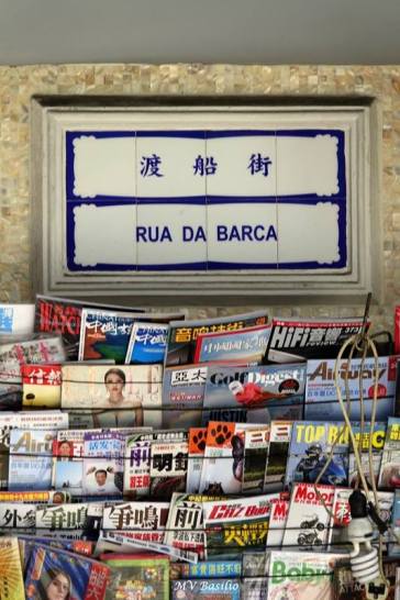 Placa toponímica da Rua da Barca, no local onde há uma tendinha que vende jornais, revistas e tabaco.