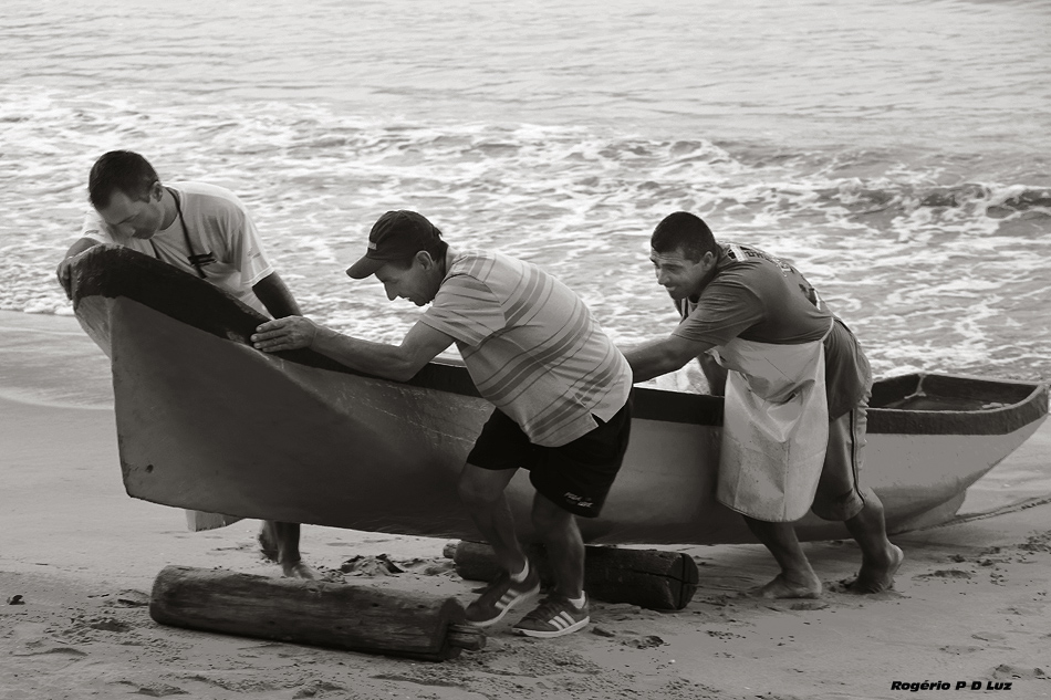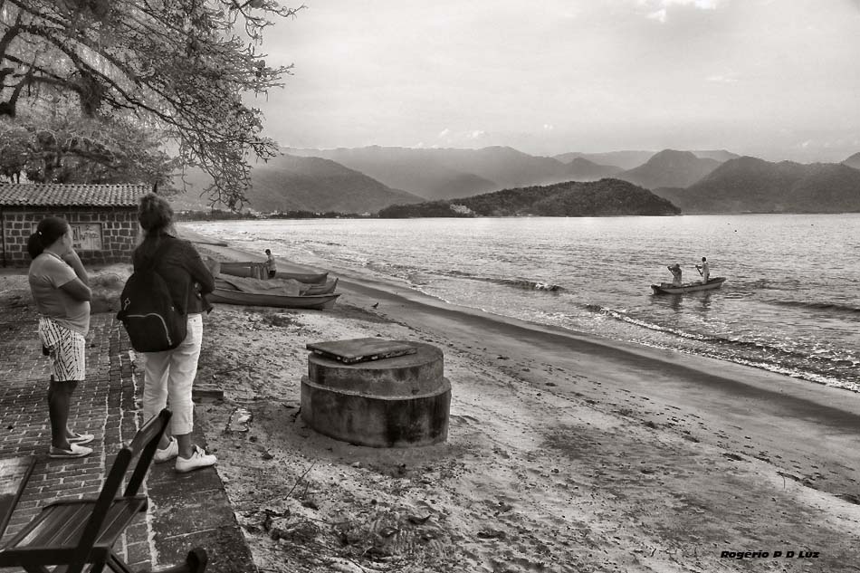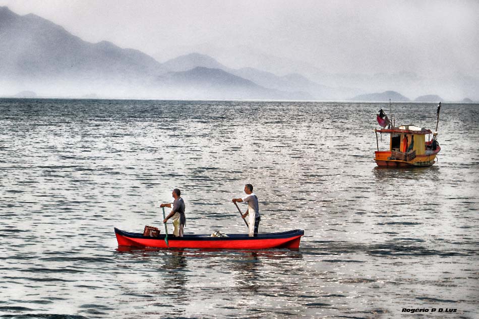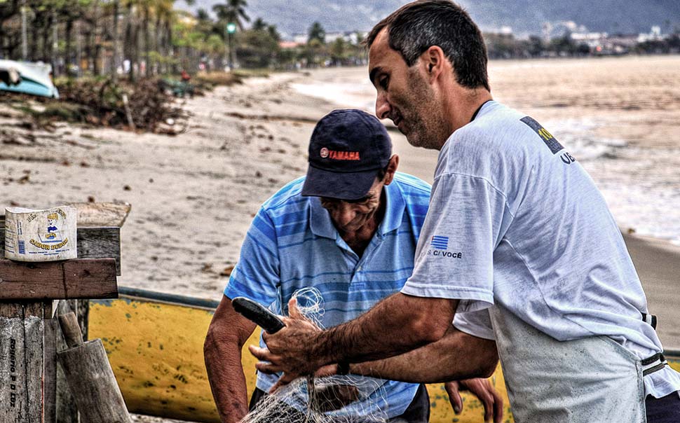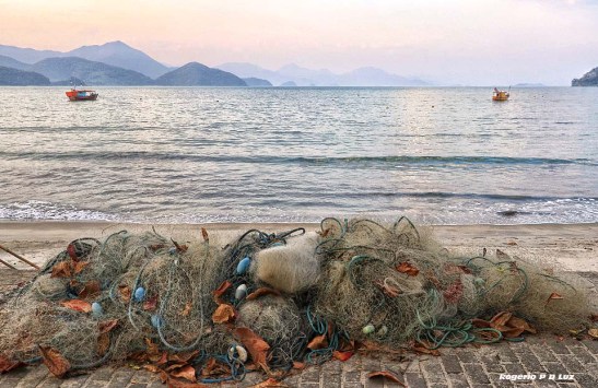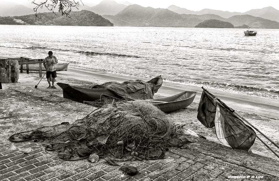 Após pescaria com rede nas águas de Ubatuba, litoral norte de São Paulo, dois pescadores numa canoa retornam à sua base na praia de Itaguá localizada na zona urbana, trazendo a bordo peixes na maioria ‘parati’. Este é o tema do ensaio fotográfico que fiz no final de tarde de uma quarta-feira do inverno de 2017, no mês de agosto.