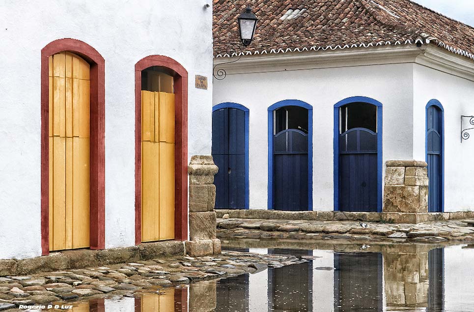 Ainda se pode ver muitas casas e sobrados com as janelas e portas pintadas de branco e azul-hortência que é símbolo da maçonaria que predominou em Paraty, tal como Óbidos em Portugal. Na foto acima, a Casa de Cultura cujo prédio original data de 1754 sofrendo depois várias reformas.