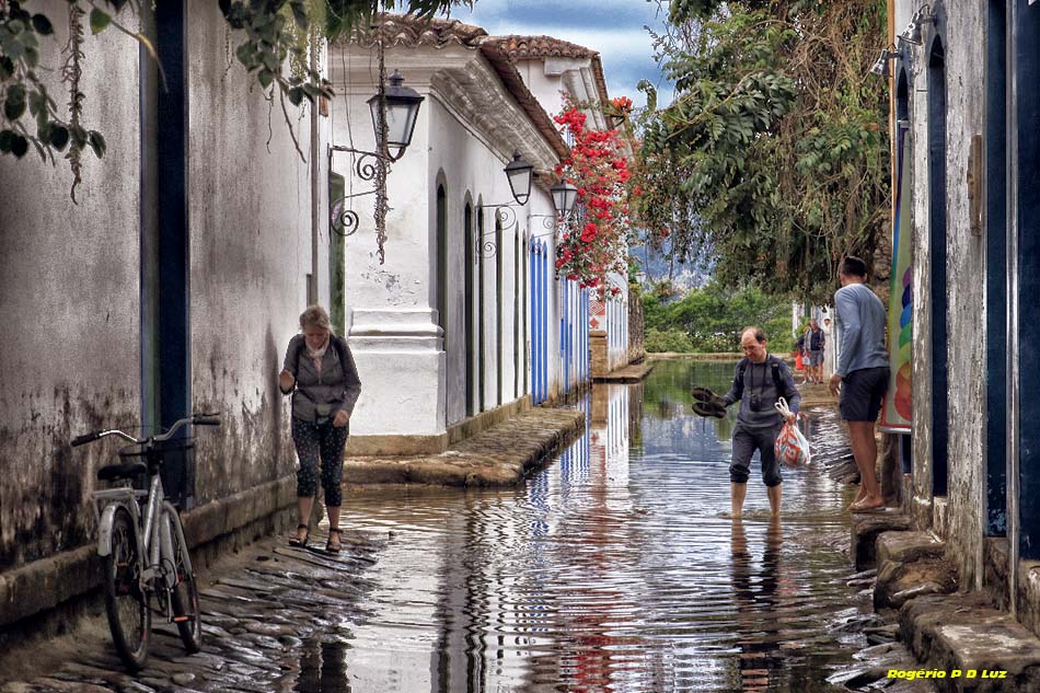 Por estar localizada quase ao nível do mar, a cidade foi projetada levando em conta o fluxo das marés. Como resultado, muitas de suas ruas são periodicamente inundadas pela maré, tanto que foram projetadas em forma de canal para ajudar no escoamento da água. Os turistas, principalmente europeus, se divertem a atravessar as ruas alagadas, tanto que Paraty é tida como a Veneza brasileira.