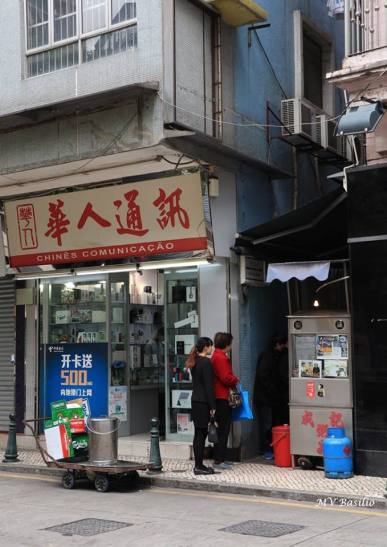 Actual aspecto do Pátio do Abridor, em chinês, Ng Ká Wâi 吳家圍 que, literalmente, significa Pátio da Família Ng. O Pátio está situado entre a Avenida de Almeida Ribeiro e a Rua do Matapau, sendo o acesso feito pela Rua dos Mercadores. Todas as manhãs, apenas durante umas horas, funciona uma tenda, mesmo junto à entrada do Pátio, que vende o tão apreciado “chü cheong fân” e uma variedade de canja, acompanhada de “yau cháu kwâi”, e lá dentro há algumas mesinhas para os clientes. Este Pátio, cuja via é curta e estreita, não tem saída. Na foto podemos ver duas pessoas junto à tenda, à espera de serem aviadas. (Foto: MV Basílio)