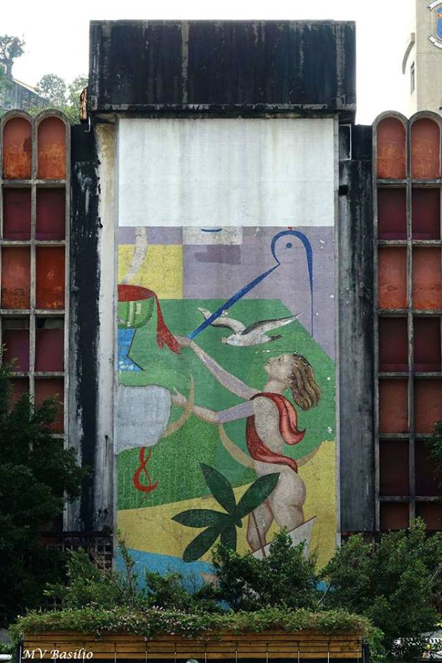 O edifício do Hotel Estoril, visto da Praça de Tap Siac. O edifício original é o que tem um mural de mosaico. O bloco que está do lado direito foi construído posteriormente, na sequência da ampliação do Hotel, e que era conhecido por Ala Nova (New Wing). Foto MV Basílio