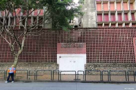 As marcas que ainda são visíveis dos caracteres chineses “Oi Tou Châu Tim”. No entanto, a designação Hotel Estoril, cujas letras estavam colocadas no lado oposto, não deixaram marcas visíveis das respectivas letras. Foto MV Basílio