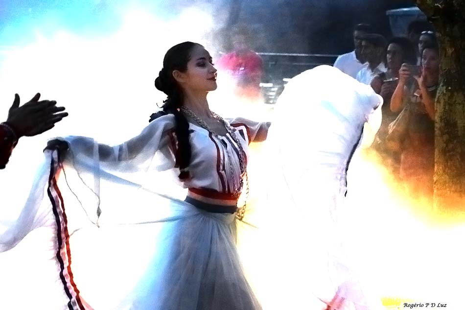 Vamos mostrar as fotos feitas sem flash, apenas com a iluminação para shows pouco favorável para fotografia e já no início da noite, além de procurar falar um pouco das danças na sequência apresentada.