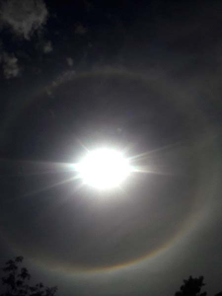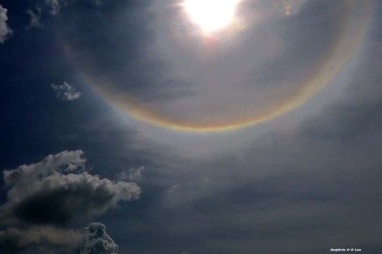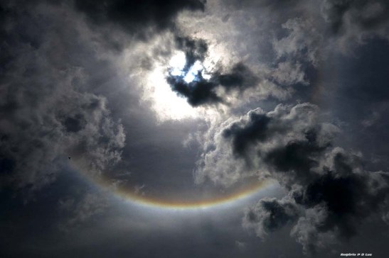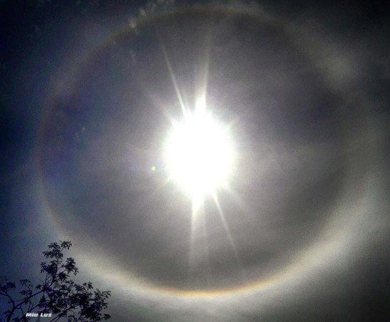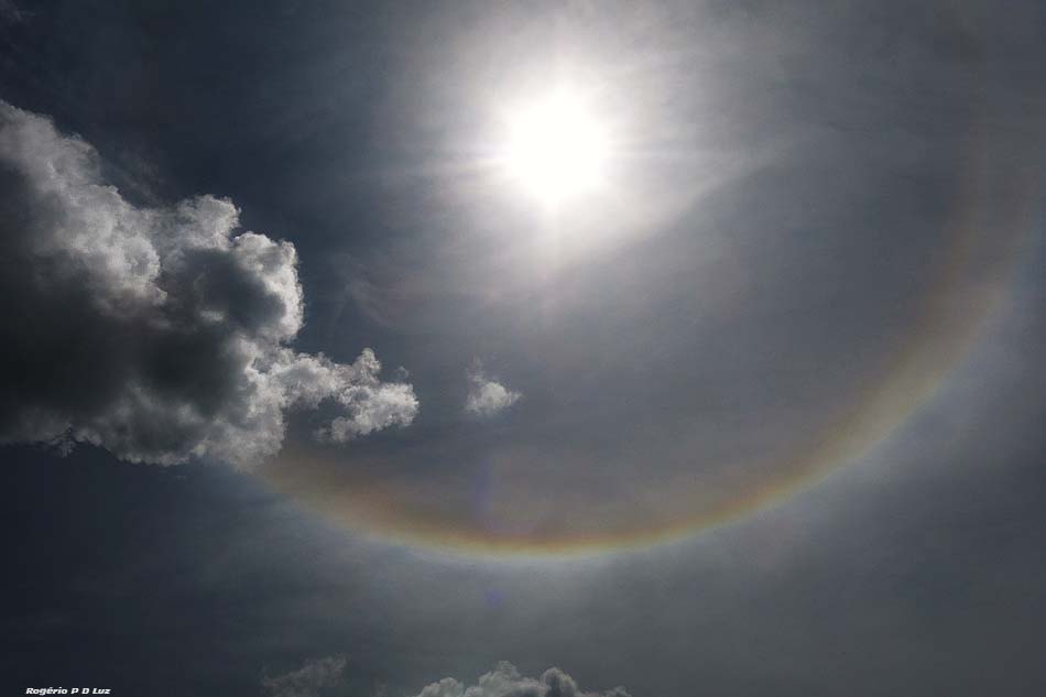 À primeira vista, vários exclamarão: “olha o arco-iris ao redor do sol”! De fato, é semelhante a um arco-iris, porém o certo é dizer – halo solar – ou halo lunar quando se forma em torno da lua.