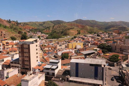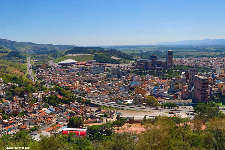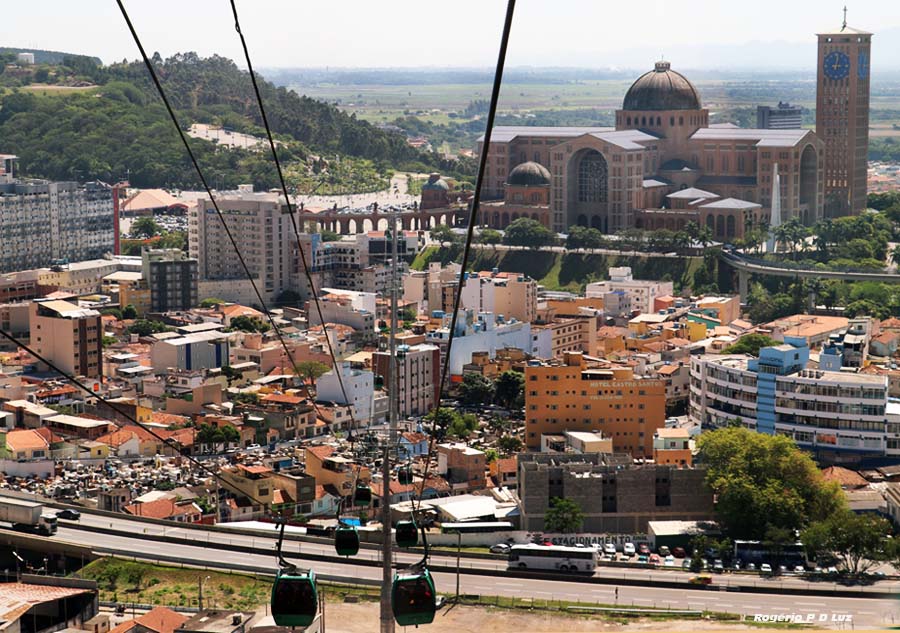 A viagem do bondinho com vista aérea da cidade de Aparecida do Norte